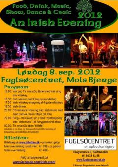 Det er denne sprudlende irske stemning, som du kommer til at opleve ved det unikke arrangement "An Irish Evening" på Fuglsøcentret lørdag 8. september 2012 fra kl. 16.00 til "late".