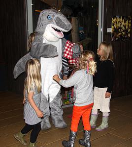 Oplev sund mad og sjove aktiviteter i Kattegatcentrets madklub for børnefamilier ! - Centrets medarbejdere laver maden, sørger for masser af hygge og underholdning - og tager selvfølgelig også opvasken ! - Sharky - Kattegatcentrets hajmaskot - byder velkommen, og er altid frisk på at give en god krammer eller bare vinke, hvis man helst vil være lidt på afstand. - Det er jo en haj ! - Maden er sund hverdagsmad, som børn kan lide - hertil serveres friske grønsager og brød. Drikkevarerne er vand, saft og mælk inkl. en kop kaffe til de voksne. Underholdningen vil være forskellige aktiviteter rundt om i udstillingen og vil variere fra gang til gang.
