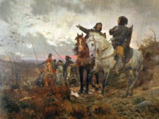 Otto Baches genremaleri fra 1882: De sammensvorne rider fra Finnerup.