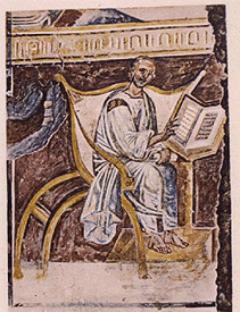 |  Kirkefaderen Augustin, som han blev malet på det ældste kendte billede, fra 500-tallet, i Laterankirken i Rom.