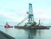 Den 480 tons tunge kran blev transporteret ad søvejen fra København til Grenaa. Transporten blev håndteret og arrangeret af firmaet BaltShip A/S, Århus.