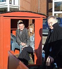 Borgmester Jens Peter Jellesen kan sidde roligt i toget, nu da Anne og Niels Nikolajsen er blevet ”lokoførere” i restauranten på mosebrugscentret i Stenvad. (Foto: Nørre Djurs Kommune).