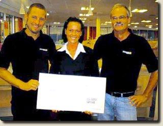 var finanselev Tanja Jensen, der overrakte de 5.000 kroner.