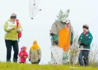 Nogle børn havde lavet drager hjemmefra, så de skyndte sig op på bakken ved flagstangen og så blev der fløjet med drager.