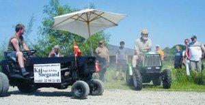 Lørdagens store trækplaster var også havetraktor-træk (billedet). Der blev slæbt og trukket så sveden piblede frem. Støvet lagde sig først, da de 3 vægtkategorier havde modtaget deres pokaler. Efter havetraktor-trækket spillede Sjaske og Allan op til hygge og fjas, og danse-benene blev svunget livligt. Søndag kom koen Magda traditionen tro på plænen til ko-banko. Senere var der brandmandsshow. Fjellerup Brandvæsen stillede op med deres nypolerede brandbil. Boldbanen blev sprøjtet til med skum og slik kastes ud til glæde for alle ungerne, som væltede rundt i skummet. Der blev også hevet mindre brandslanger frem, og ungerne hyggede sig med at sprøjte på hinanden og forældre, som stod og så på showet.