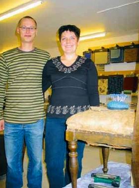 – Det var noget min far gjorde en del i, og det smittede sÃ¥ af pÃ¥ mig. Nu har jeg sÃ¥ fÃ¥et Eigil til at interessere sig for det ogsÃ¥, og sÃ¥ har det grebet sÃ¥ meget om sig, at vi til sidst fandt ud af, at vi da vist ligesÃ¥ godt kunne oprette eget firma. Og det har vi sÃ¥ gjort - med Eigil som ejer, mens jeg er almindelig ansat. Og det er faktisk gÃ¥et rigtig godt. Vi har virkelig fÃ¥et mange spændende opgaver, og kan bestemt ikke klage over søgningen, siger Gitte Frey, der inden firma-starten fik et intensivt kursusforløb hos én af byens gamle møbelpolstrere, der da ogsÃ¥ havde nogle maskiner, han gerne ville sælge. Dem købte Eigil og Gitte sÃ¥, hvorefter de gav sig til at indrette møbelpolster-værkstedet pÃ¥ Lokesvej 2A.