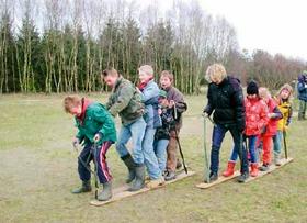 Efter at have set det store område var det tid til madpakker. Efter frokost blev de delt ind på hold på tværs af alder. Nu skulle der bygges kongestol og laves stylter samt kamelski. Børnene byggede nogle gevaldige flotte kongestole, som var mere eller mindre komfortable for den, der skulle transporteres. Stylterne var derimod en udfordring, for her var det dem, der var bedst til besnørringer, der viste deres værd.