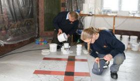 Fra 23. marts til 3. april var tre konservatorer fra Nationalmuseet arbejde med en kompliceret marmorering af Riddersalens gulv. Efter en tørreperiode genåbnes Riddersalen i dag af museets protektor Hans Kongelige Højhed Prins Joachim.