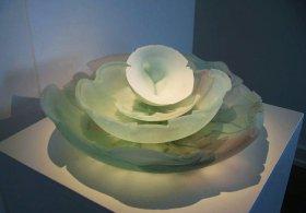 Rigtig mange værker med farven blå er fremme - herunder japanske Hiroshi Mitsuishis store isblå skulptur med fire elementer. Havets bølger har mange udtryk i virkeligheden, men også når en kunstner lader sig inspirere af bølgerne. Det engelske