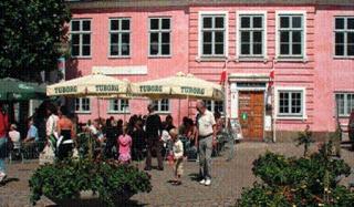 Musikken på Grenaa Torv spilles foran Grenaa Turistbureau.