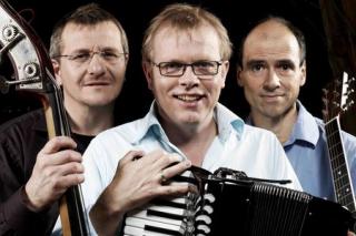 I deres righoldige repertoire af nye danske viser med tekster af Rune T Kidde og Pernille Plaetner får de smilene til at sidde løst. Virtuositeten sprøjter ud af knaphullerne på alle tre musikere, uanset om de giver den gas i et instrumentalnummer af verdensformat eller en tango.