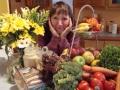 Pamela Joy omgivet af raw-food.
