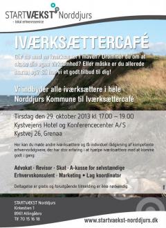 Iværksættere kan hér få gratis rådgivning fra en hel flok specialister. - Så går du med en iværksætter i maven ? - Drømmer du om at skabe din egen virksomhed ? - Eller måske er du allerede startet op ? - Så har STARTVÆKST Norddjurs hér et godt tilbud til dig ! - STARTVÆKST Norddjurs indbyder alle iværksættere i hele Norddjurs Kommune til denne iværksættercafé. - Her kan du møde andre iværksættere og få individuel rådgivning af kompetente erhvervsrådgivere, der har stor erfaring i at hjælpe iværksættere med at komme godt i gang.