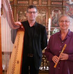 Joost Schelling på barokharpe og Annette Friisholm på blokfløjte.
