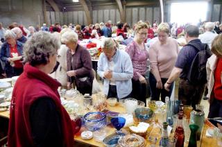 Nørre Djurs HKs årlige loppemarked afholdes i og ved Nørre Djurs Hallen i Glesborg. Billedet er fra et tidligere loppemarked i en hal ved DLG.