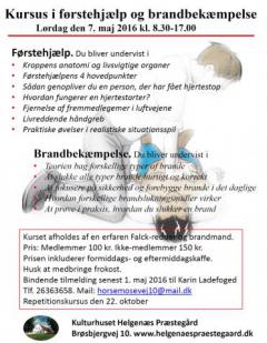 Førstehjælpskursus i Kulturhuset Helgenæs Præstegård lørdag d. 7/5 kl. 8.30-17