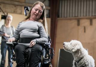 Mette Bjørnholdt Jensen med hendes servicehund Alfred.