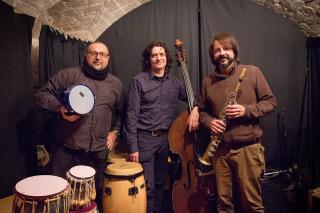 Albafar, siciliansk trio, Fulvio Farka på tablas, Pier Pablo Alberghini på kontrabas og Salva Barbas Barbagallo på sopran saxofon.