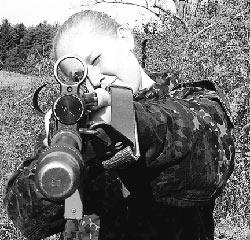 På billedet lærer en af de kvindelige deltagere afstandsbedømmelse før skudafgivelse. Foto: Jan Lund