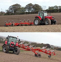 Men der skal noget af en traktor til at slæbe den halvbugserede 6-furede Kuhn-vendeplov model Vari-Manager, der også var ude at blive luftet i Fausing. Blandt mange andre tekniske finesser kører den lange og brede plov på egne hjul i modsætning til de liftophængte modeller, hvor hele plovens vægt bæres i traktorens liftarme under vendingerne. Med 6 plovskær i jorden på én gang er efterårspløjningen hurtigt overstået, og det er næsten et spørgsmål om at have en mark, der er stor nok til ploven.