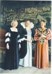 Djurs Barok-ensemble med Ingegerd Bogh, cembalo, Inger Wierød, sang og Annette Friisholm, blokfløjte spiller på søndag på Sostrup. Her ses de foran gobelinerne på Gl. Estrup ved en af sommerens koncerter.