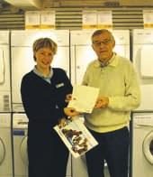 Konkurrencen kørte over to gange, og man kunne blandt andet vinde et gavekort på 2500 kroner til et Danland-ophold. Vinderen af denne præmie hos Serviceringen i Grenaa blev Bjarne Olsen, der på billedet får overrakt det flotte gavekort af Tina Westmark fra Serviceringen/A/S Søren Jensen.