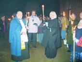 Billedet viser præsterne fra de tre kirkesamfund. Fra venstre er det pater Herbert Krawczyk fra Den Katolske Kirke, Ole Kauczki fra Pinsekirken og sognepræst Lene Højholt fra Folkekirken.