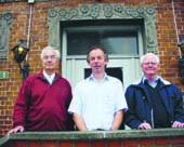 Forfatterne til »To landsbydrenges fodspor« sammen med deres udgiver. Fra venstre er det: Birger Breum, boghandler Finn Pedersen (Kolind Boghandel) og Erland Skovbjerg. Foto: Lokalavisen