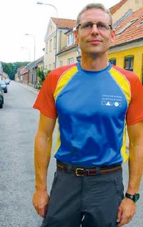 Den 42-årige grenaaenser Jens Ole Nielsen løb for cirka 14 dage siden et 24 timers ultra-løb i Viborg. Han nåede ud på 171,3 km. 14 dage før gennemførte han et næsten 80 km. langt bjergløb i Schweiz. Løbstrøjen er det synlige bevis herpå.