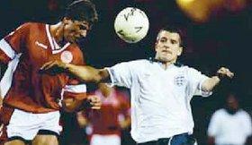 Mandag i næste uge stÃ¥r AC Horsens’ cheftræner Kent Nielsen for endnu et træner-træf pÃ¥ Grenaa Stadion. Her ses han i aktion for landsholdet i en kamp mod England fra starten af 90’erne. Modstanderen er den legendariske Wolverhampton-angriber Steve Bull.