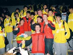 De danske efterskole-drenge mødte unge fra hele verden til VM i skolevolley - her Kina, der bliver vært for det næste VM i 2010.