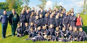 Trustrup Springerne er her stillet op ved Toubrohallen med de nye dragter - flankeret af de nye sponsorer. Efter et begivenhedsrigt halvår er truppen klar til den årlige udlandstur, hvor der er opvisninger i Barlinek i Polen og i Berlin.