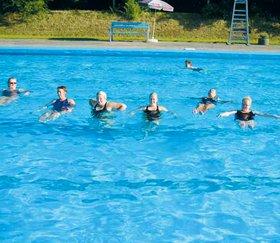 "For gravide og overvægtige er det en ideel motionsform, da vandet overtager en stor del af vægten, så kroppen kan bevæge sig lettere og friere end på jorden", siger Anja Svensson og Poul Nielsen fra FC Grenaa.